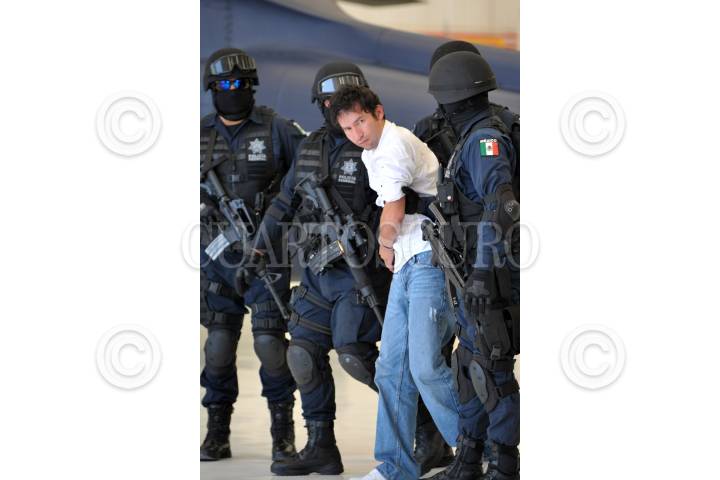 MÉXICO, DF., 30MAYO2010.- Alfonso Palomino Piñón de 28 años fue presentado ante los medios de comunicación como presunto responsable del manejo de las finanzas de la banda denominada como "La Familia Michoacana" en el Estado de Morelia, Guanajuato y Michoacán. Así mismo presuntamente era el encargado del cobro de los montos derivado de las extorsiones, secuestro y venta de drogas en estos estados. FOTO: LUIS CARBAYO/CUARTOSCURO.COM