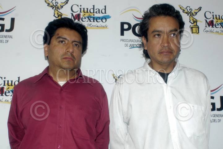 MÉXICO, D.F. 07OCTUBRE2010.- La oportuna intervención de elementos de la Policía de Investigación de la Procuraduría General de Justicia del Distrito Federal (PGJDF) permitió la captura de Juan Jacobo García Salinas, de 44 años, y Arturo Yáñez Márquez, alias El Contador, de 42 años, que presuntamente enganchaban a jovencitas a través de anuncios en periódicos donde solicitaban modelos y demostradoras para tiendas departamentales. A sus víctimas las llevaban a un domicilio de la colonia Valle Gómez, donde las obligaban a tener relaciones sexuales para video grabarlas. FOTO: LUIS CARBAYO/CUARTOSCURO.COM