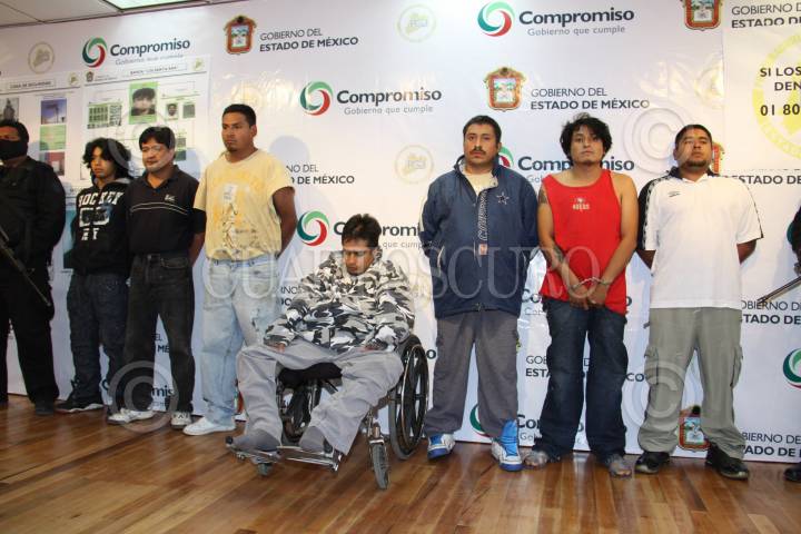TOLUCA, ESTADO DE MÉXICO, 30ENERO2011.- Se realizo la presentación de una banda que se dedicaba al secuestro en la zona de Toluca y Metepec y que tenia mas de quince secuestros la cual es presuntamente dirigida por Alberto Aurelio Estrada Flores, alias el Pazones de 27 años. FOTO: LUIS CARBAYO/CUARTOSCURO.COM