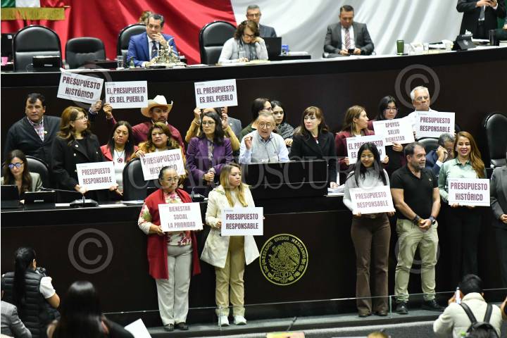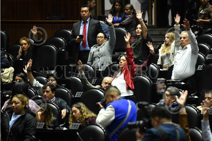 CIUDAD DE MÉXICO, 11DICIEMBRE2024.- Diputados de la bancada de Morena, emiten su votación durante la sesión ordinaria de la Cámara de Diputados en la que se discutió en lo general el presupuesto de egresos para el ejercicio fiscal 2025, el dictamen fue aprobado por 349 votos a favor y 129 en contra. FOTO: MARIO JASSO/CUARTOSCURO.COM