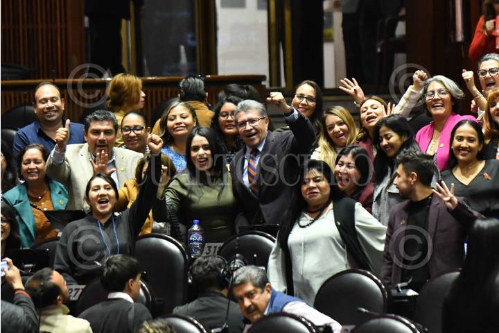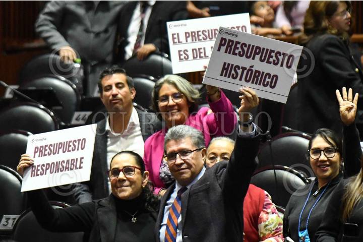 CIUDAD DE MÉXICO, 11DICIEMBRE2024.- Ricardo Monreal, diputado y coordinador del grupo parlamentario de Morena, festeja junto sus compañeras de bancada, durante la sesión ordinaria de la Cámara de Diputados en la que se discutió en lo general el presupuesto de egresos para el ejercicio fiscal 2025, el dictamen fue aprobado por 349 votos a favor y 129 en contra. FOTO: MARIO JASSO/CUARTOSCURO.COM