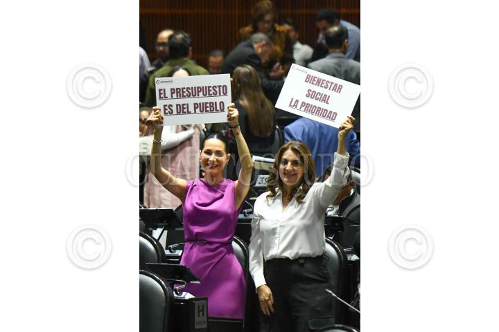 CIUDAD DE MÉXICO, 11DICIEMBRE2024.- Las diputadas de Morena: Merilyn Gómez, presidenta de la comisión de Presupuesto y Cuenta Pública y Martha Gabriela Gómez, presidenta de la Comisión de Trabajo y Previsión Social, durante la sesión ordinaria de la Cámara de Diputados en la que se discutió en lo general el presupuesto de egresos para el ejercicio fiscal 2025, el dictamen fue aprobado por 349 votos a favor y 129 en contra. FOTO: MARIO JASSO/CUARTOSCURO.COM