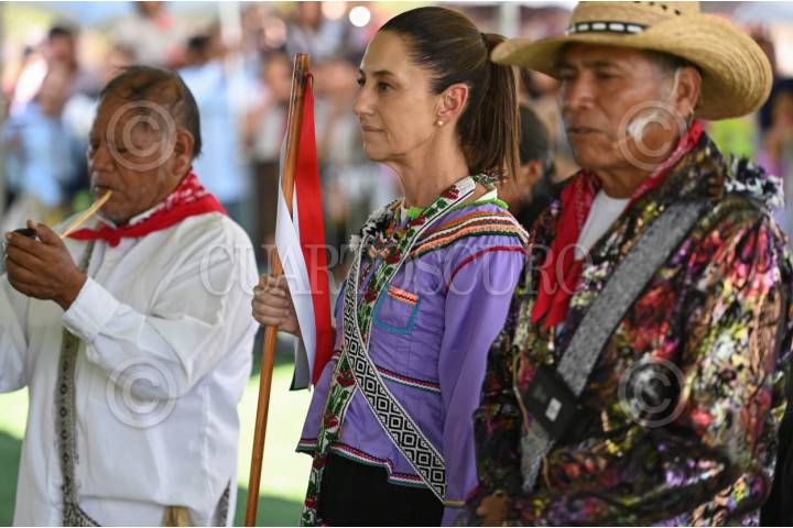 NAYAR, NAYARIT, 27JUNIO2025.- Claudia Sheinbaum, presidenta de México, durante el evento protocolario de "Presupuesto para pueblos indígenas y afroamexicanos". FOTO: PRESIDENCIA/CUARTOSCURO.COM
