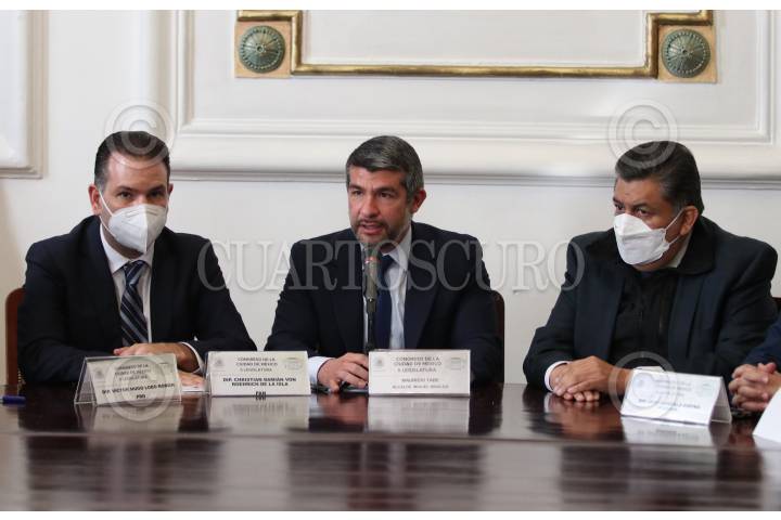 Mauricio Tabe, alcalde de Miguel Hidalgo, entregó esta mañana en el Congreso de la Ciudad la propuesta 2022 de presupuesto para su alcaldía. Fue recibida por Cristian Von, coordinador del grupo parlamentario PAN en el Congreso.