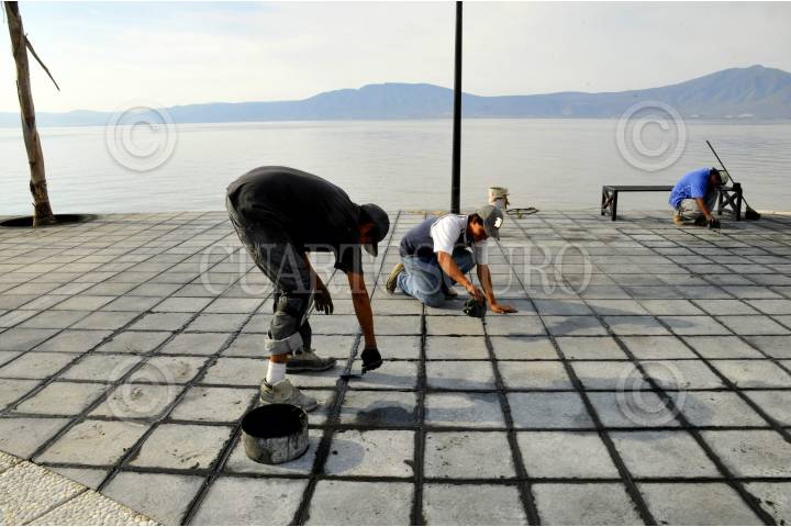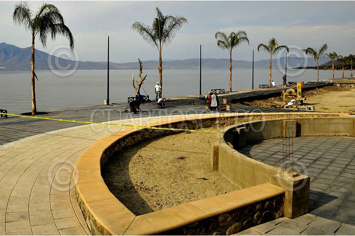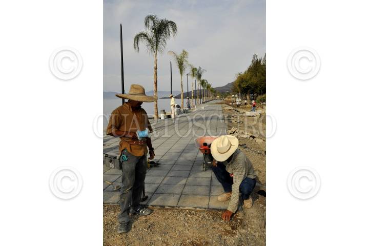 AJIJIC, JALISCO, 10MARZO2009.- La construcción del Malecón en este poblado se prevee terminar en semana Santa. La obra contará con arena de playa, plazoleta, palapas y casi medio kilómetro de construcción de pavimento para el paseo de los visitantes y habitantes de dicho lugar. FOTO: MARIA DI PAOLA BLUM/CUARTOSCURO.COM