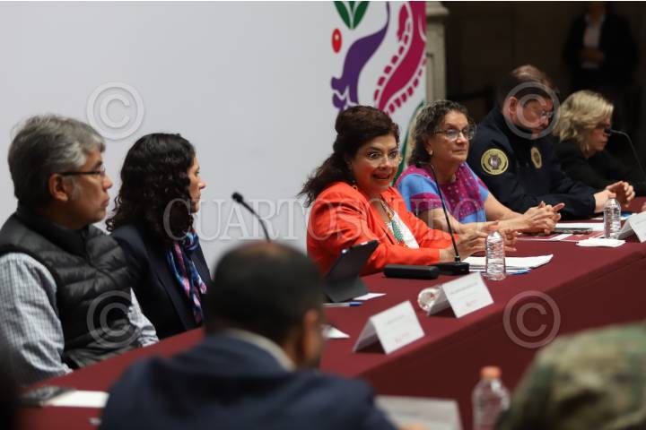 CIUDAD DE MÉXICO, 14ABRIL2025.- Myriam Urzúa, secretaria de Protección Civil, explica el próximo simulacro que se llevará a cabo el 29 de abril próximo. FOTO: DANIEL AUGUSTO/ CUARTOSCURO.COM