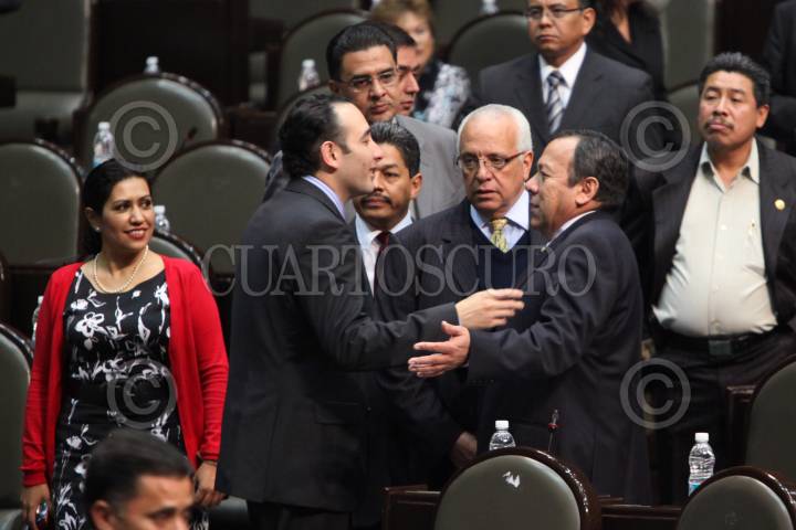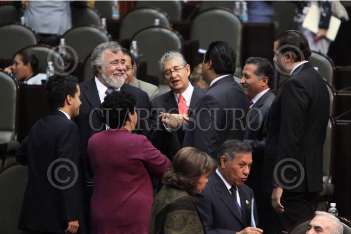 MÉXCO D.F., 07OCTUBRE2010.- Carlos Pérez Cuevas, Diputado del PAN, César Augusto Santigo, Carlos Ramírez Marín ambos Diputados del PRI y Jesús Zambrano, Diputado del PRD, donde se voto la Ley General para Prevenir y Sancionar los Delitos en Materia de Secuestro, que fue aprobada durante la sesión en la Cámara de Diputados. FOTO: GUILLERMO PEREA/CUARTOSCURO.COM