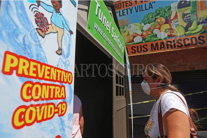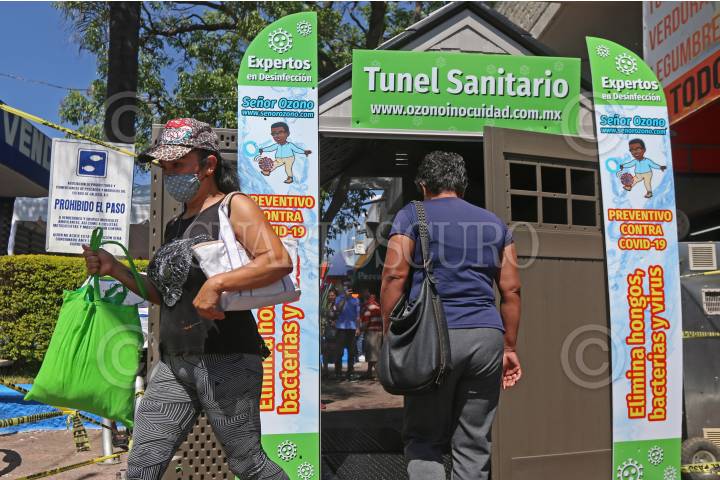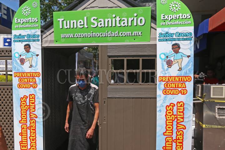 Autoridades del Mercado del Mar de Zapopan, contrataron empresa especializada para instalación de túnel sanitario, para prevenir propagación del coronavirus (Covid-19).