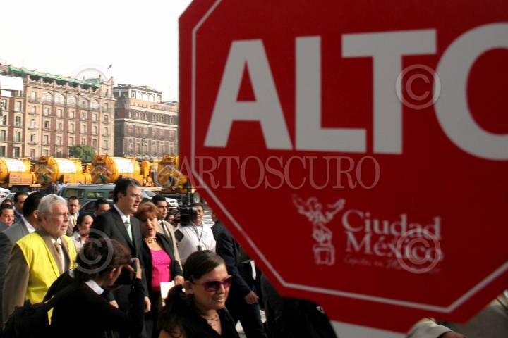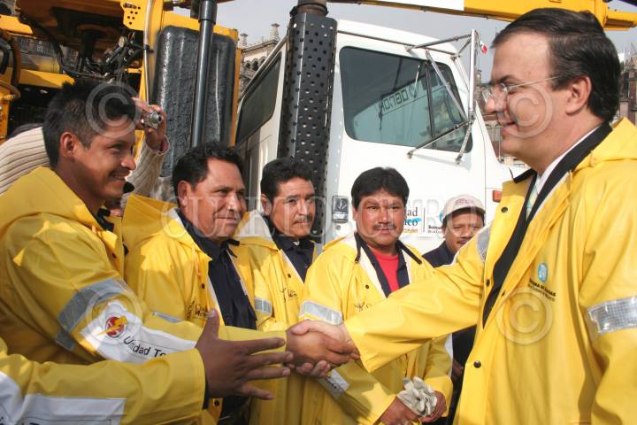 MÉXICO, D.F., 20JUNIO2007.- El jefe de Gobierno, Marcelo Ebrard, presentó en el Zócalo de la ciudad la Unidad Tormenta del Sistema de Aguas local para el riesgo hidrometeorológico. FOTO: ISAAC ESQUIVEL/CUARTOSCURO.COM