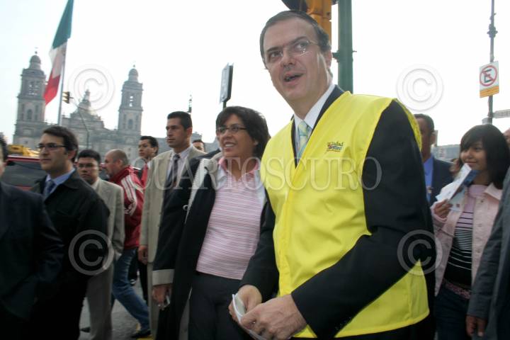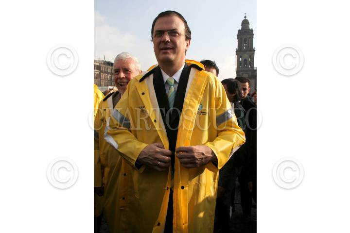 MÉXICO, D.F., 20JUNIO2007.- Frente a Palacio Nacional, el jefe de Gobierno, Marcelo Ebrard, durante la presentación de la Unidad Tormenta del Sistema de Aguas local para el riesgo hidrometeorológico, en el Zócalo de la ciudad, FOTO: ISAAC ESQUIVEL/CUARTOSCURO.COM