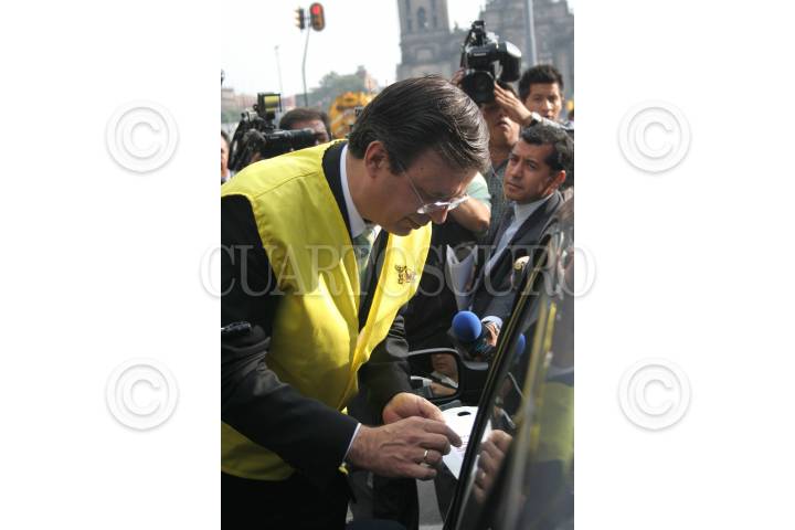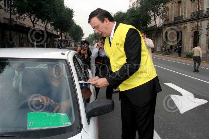 MÉXICO, D.F., 20JUNIO2007.- El jefe de Gobierno, Marcelo Ebrard, repartió el nuevo Reglamento de Tránsito Metropolitano en la calle "0 de Noviembre. FOTO: ISAAC ESQUIVEL/CUARTOSCURO.COM