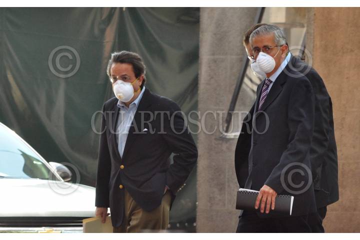 MÉXICO, D.F., 30ABRIL2009.- Juan Molinar Horcasitas, Secretario de Comunicaciones y Transportes y José Valente Zinzer, director general de protección y medicina preventiva en el transporte, ofrecieron una conferencia de prensa para hablar sobre el actual estado de las comunicaciones áreas y terrestres durante este período de contingencia por la epidemia de la influenza humana. FOTO: EDUARDO MORALES/CUARTOSCURO.COM