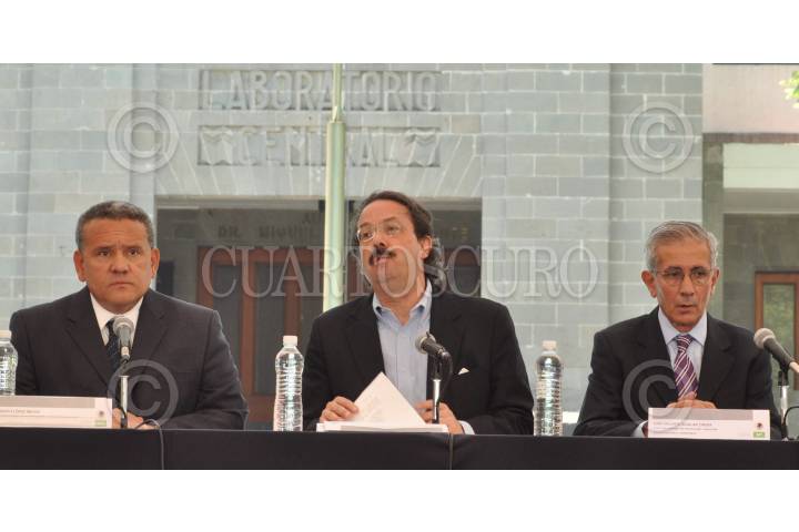 MÉXICO, D.F., 30ABRIL2009.- Gilberto López Meyer, director general de ASA, Juan Molinar Horcasitas, Secretario de Comunicaciones y Transportes y José Valente Zinzer, director general de protección y medicina preventiva en el transporte, ofrecieron una conferencia de prensa para hablar sobre el actual estado de las comunicaciones áreas y terrestres durante este período de contingencia por la epidemia de la influenza humana. FOTO: EDUARDO MORALES/CUARTOSCURO.COM