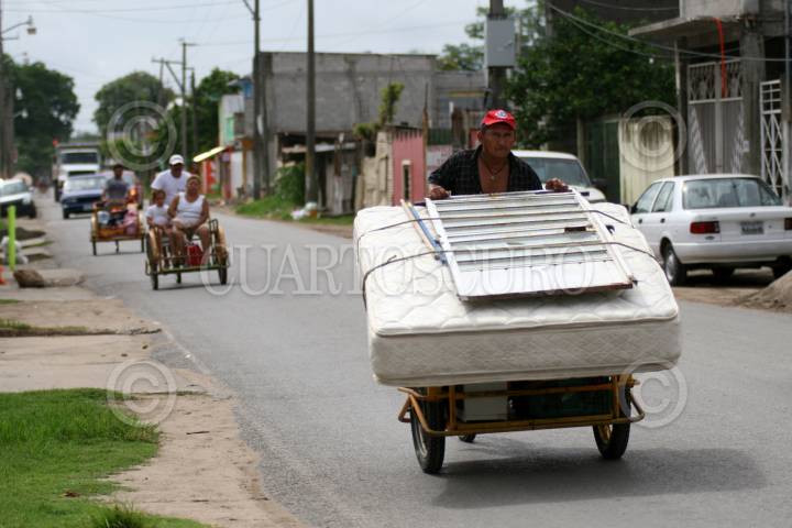VILLAHERMOSA, TABASCO, 22JUNIO2008.- Unos tricicleros fueron observados cuando se movian con enseres domesticos y ubicarse en zona menos peligroso por la cercania al río Carrizal. FOTO: MARCO POLO GUZMÁN HERNÁNDEZ/CUARTOSCURO.COM