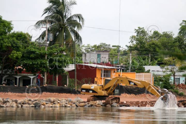 VILLAHERMOSA, TABASCO, 22JUNIO2008.- Maquinaria de trabajo pesado realiza obras sobre los bordos del río Carrizal en donde los niveles del agua representa peligro para los habitantes. FOTO: MARCO POLO GUZMÁN HERNÁNDEZ/CUARTOSCURO.COM
