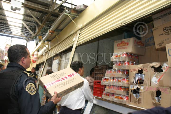 MÉXICO, D.F. 05JULIO2006.- Policías preventivos localizaron 7 bodegas en el mercado de la colonia peralvillo con mercancía robada a camionetas de reparto durante la semanba, un sujeto fue detenido. FOTO: Pedro Marrufo/CUARTOSCURO.COM