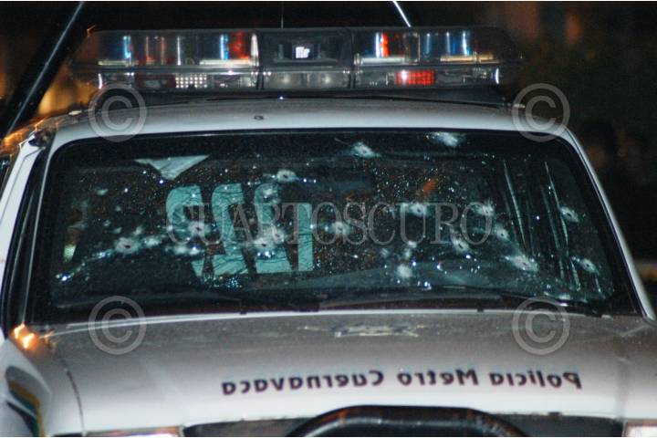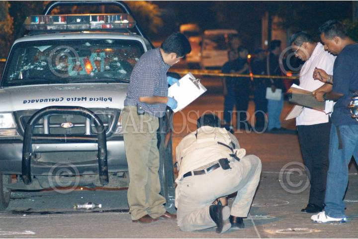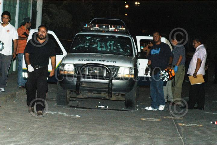 CUERNAVACA, MORELOS30ABRL2007.- Dos policias preventivos metropolitanos fueron asesinados a tiros uno resulto gravamente herido al ser rafagueados anoche cuando hacian sus recorridos de vigilacia en la patrulla 1223, en la colonia las grangas por unos desconocidos que viajaban en un vehículo rojo. FOTO: JORGE ARTURO GARCÍA/CUARTOSCURO.COM