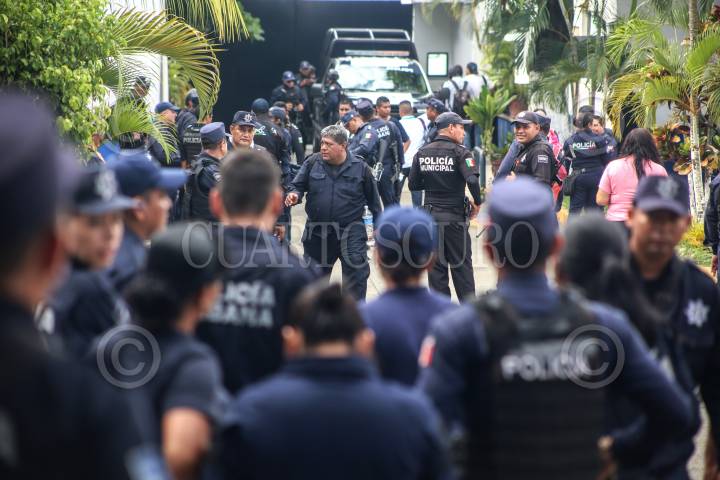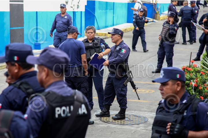 ACAPULCO, GUERRERO, 12JULIO2019.- Policías Preventivos de Acapulco protestan adentro de las instalaciones de la Secretaria de Seguridad Publica para exigir seguros de vida, uniformes, servicio médico y armamento. Los policías se mantuvieron concentrados y no salieron a hacer recorridos cotidianos por el puerto. FOTO: CARLOS ALBERTO CARBAJAL /CUARTOSCURO.COM
