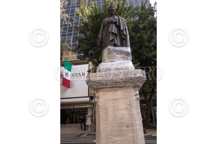 CIUDAD DE MÉXICO. 25NOVIEMBRE2019.- Vallas metálicas, y plástico están protegiendo el centro comercial Reforma 222, así como, monumentos en Paseo de la Reforma, debido a la marcha que saldrá del Ángel de la Independencia, conmemorativa a exigir cese la Violencia en Contra de las mujeres. FOTO: VICTORIA VALTIERRA /CUARTOSCURO.COM