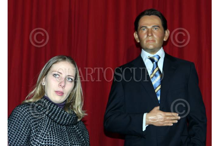 MÉXICO, D.F., 04NOVIEMBRE2010.- Andrea Vazquez, prima de Juan Camilo Mouriño, ex secretario de Gobernación durante la delevación de la estatua de cera del ex secretario que se realizo esta noche en el museo de Cera a dos años de su deceso. FOTO: RODOLFO ANGULO/CUARTOSCURO.COM