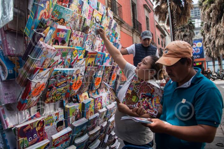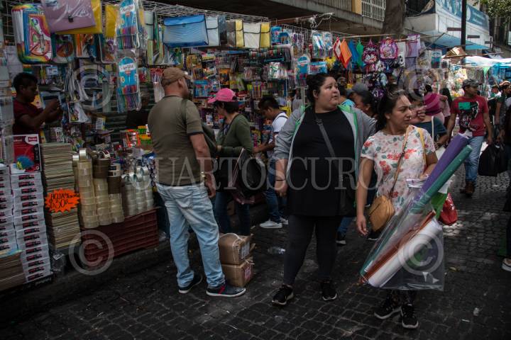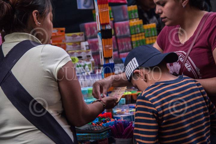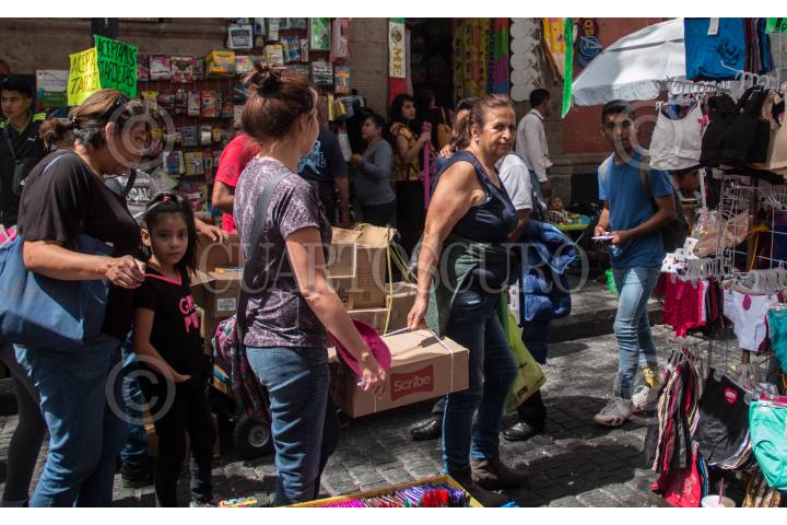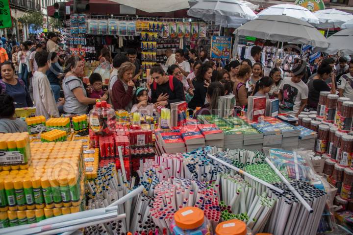 CIUDAD DE MÉXICO, 10AGOSTO2019.- Padres de familia acuden con sus hijos a la calle de Mesones, en búsqueda de surtir la lista de útiles escolares para el regreso a clases en primaria y secundaria. El tianguis que se coloca en calles del Centro Histórico en esta temporada ofrece variedad y precios económicos. FOTO: ANDREA MURCIA /CUARTOSCURO.COM