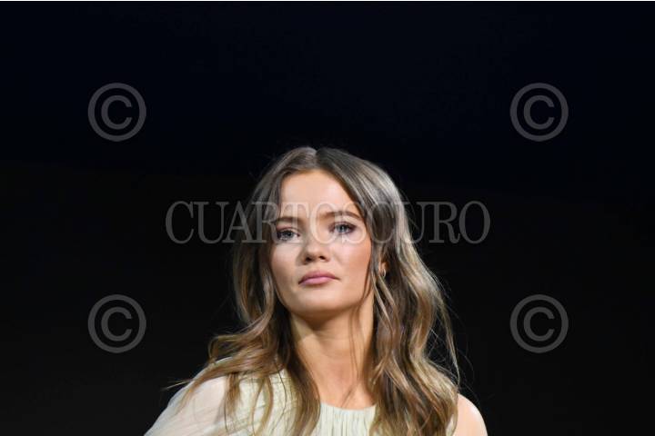 CIUDAD DE MÉXICO, 04MAYO2024.- Freya Allan, actriz que interpreta a Mae, en la película El Planeta De Los Simios: Nuevo Reino, durante su participación en el segundo día de actividades del CCXPMX 2024 realizado en el centro de convenciones Citi Banamex. FOTO: MARIO JASSO/CUARTOSCURO.COM