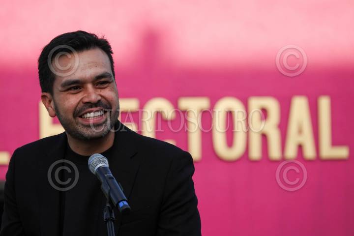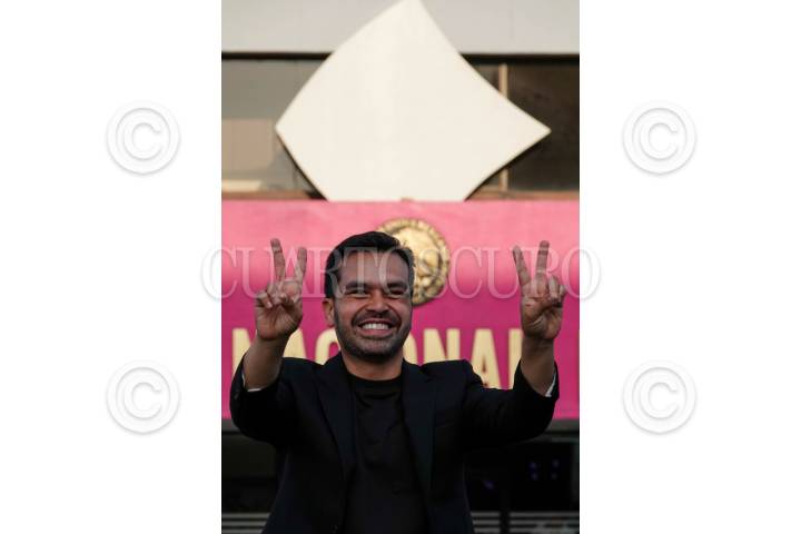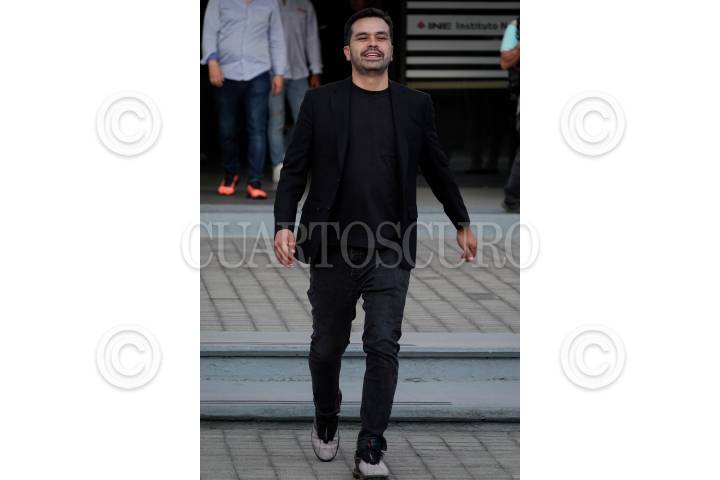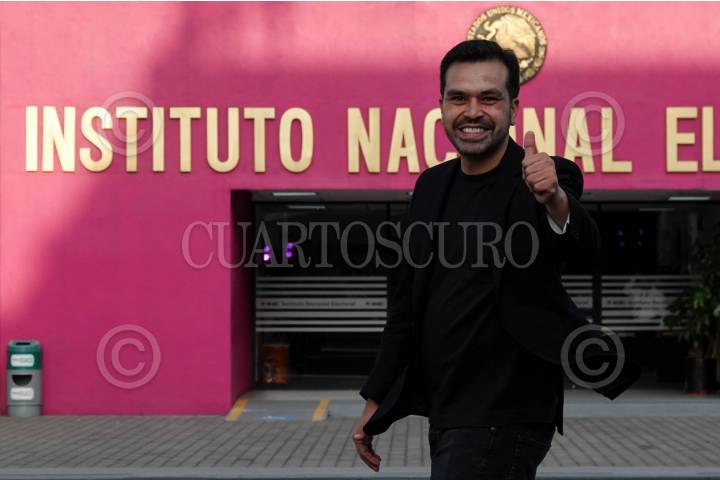 CIUDAD DE MÉXICO, 06ABRIL2024.- Jorge Álvarez Máynez, candidato por Movimiento Ciudadano, acudió a las inmediaciones del Instituto Nacional Electoral (INE) cómo parte del ensayo previo al primer debate presidencial el día de mañana en dicha sede. FOTO: GALO CAÑAS/CUARTOSCURO.COM