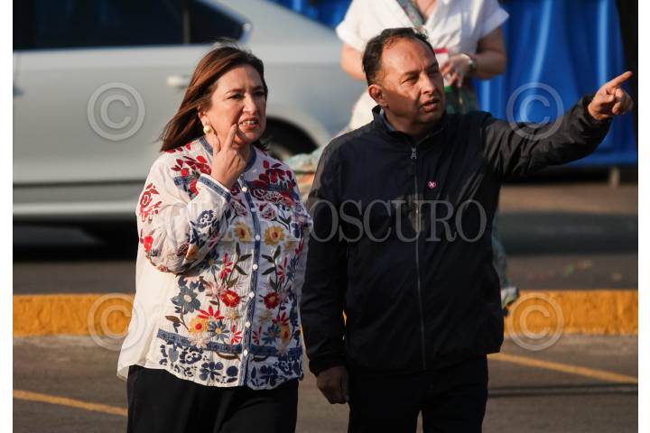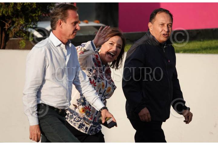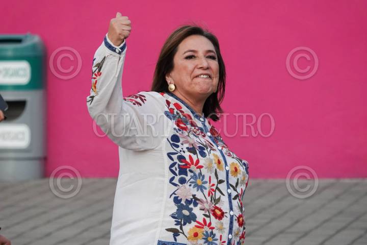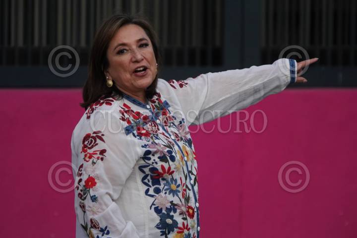 CIUDAD DE MÉXICO, 06ABRIL2024.- Xóchitl Gálvez, candidata a la presidencia de la República por la coalición Fuerza y Corazón por México (PAN-PRI-PRD) acudió a las inmediaciones del Instituto Nacional Electoral (INE) cómo parte del ensayo previo al primer debate presidencial el día de mañana en dicha sede. FOTO: GALO CAÑAS/CUARTOSCURO.COM