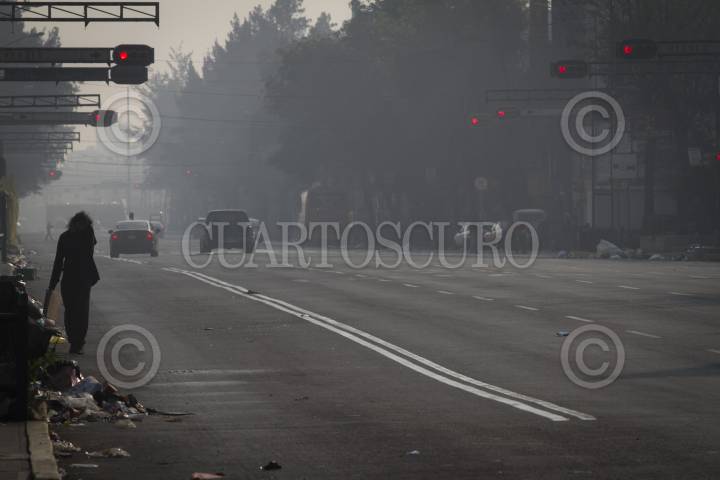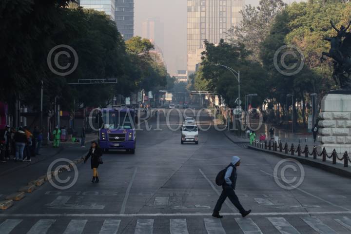 MÉXICO, D.F., 01ENERO2016.- Con una intensa neblina combinada con el humo por la quema de cuetes la ciudad amaneció en su primer día del año con un color grisaseo, los capitalinos poco a poco comenzaron sus actividades con el desvelo a cuesta tras la fiesta. FOTO: MOISÉS PABLO /CUARTOSCURO.COM