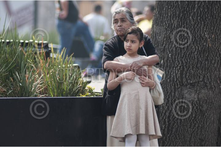 MÉXICO, D.F., 01ENERO2016.- Una señora de la tercera edad y su nieta, esperan afuera del metro Pino Suárez el camión que la las llevará a su destino. FOTO: DIEGO SIMÓN SÁNCHEZ /CUARTOSCURO.COM