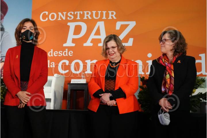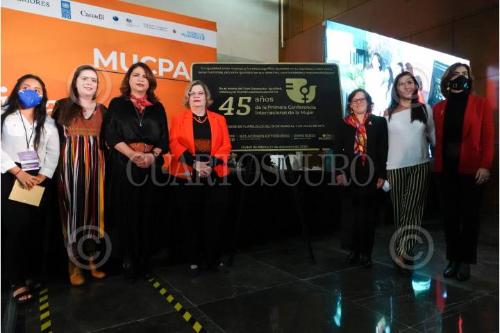 Nadine Gasman, directora del Instituto Nacional de las Mujeres (INMUJERES), en compañía de María Fabiola Alanis Sámano, comisionada Nacional para Prevenir y Erradicar la Violencia contra las Mujeres y Belén Sanz Luque, representante de la ONU Mujeres México, encabezó la conferencia del Encuentro Nacional de Mujeres Constructoras de Paz por el 45 aniversario de la primer encuentro de mujeres en Tlatelolco.