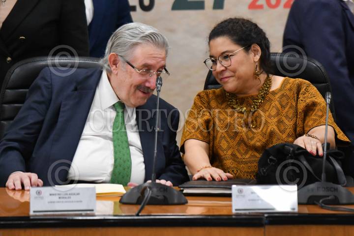 CIUDAD DE MÉXICO, 27JUNIO2024.- Los ministros de la SCJN: Luis María Aguilar, y Lenia Batres, durante la primer mesa del "Diálogos nacionales sobre la reforma constitucional al poder judicial" realizado en el salón del protocolo de la Cámara de Diputados. FOTO: MARIO JASSO/CUARTOSCURO.COM