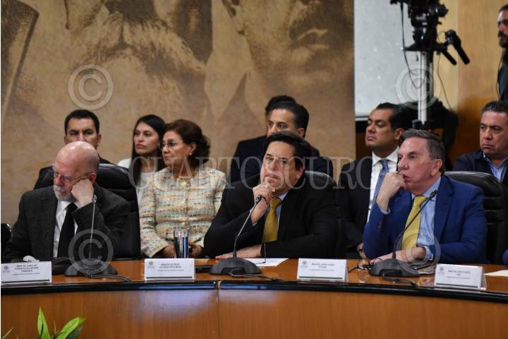 CIUDAD DE MÉXICO, 30JULIO2024.- Juan Ramiro Robledo, diputado presidente de la Comisión de Puntos Constitucionales; Guadalupe Taddei, consejera presidenta del INE; Lenia Batres, ministra de la SCJN, y Yasmín Esquivel, ministra de la SCJN, durante la séptima mesa del "Diálogos nacionales sobre la reforma constitucional al poder judicial" realizado en el salón del protocolo de la Cámara de Diputados. FOTO: MARIO JASSO/CUARTOSCURO.COM