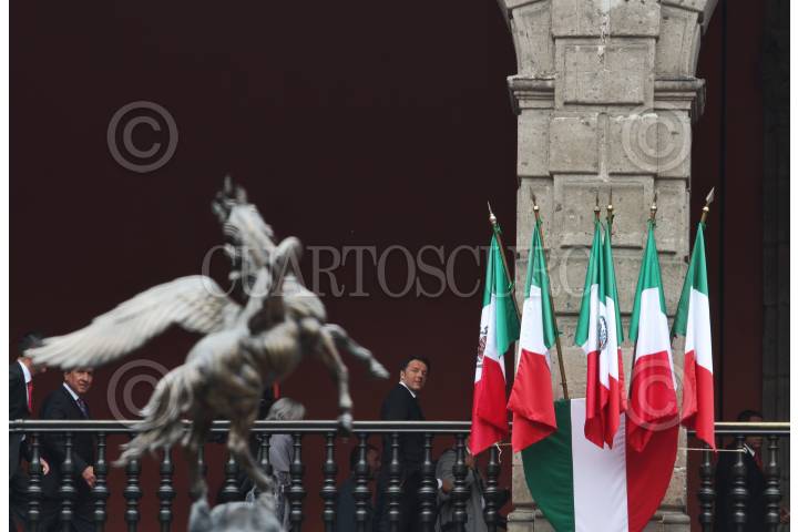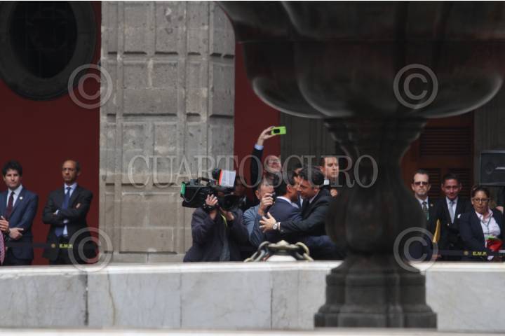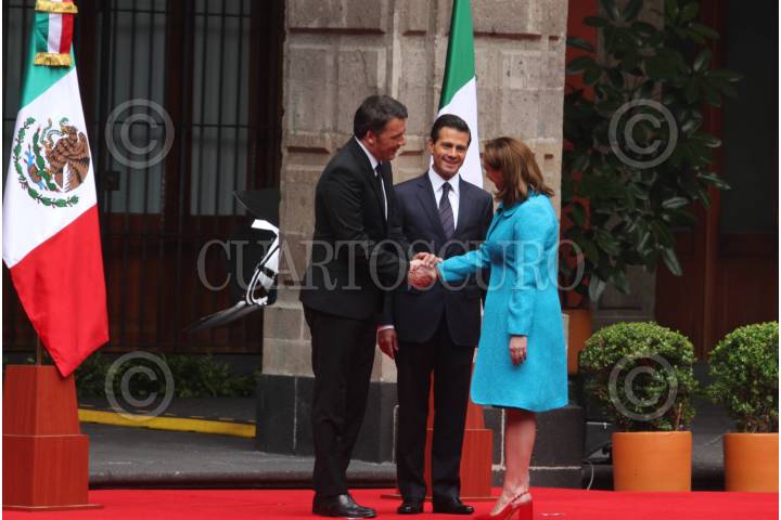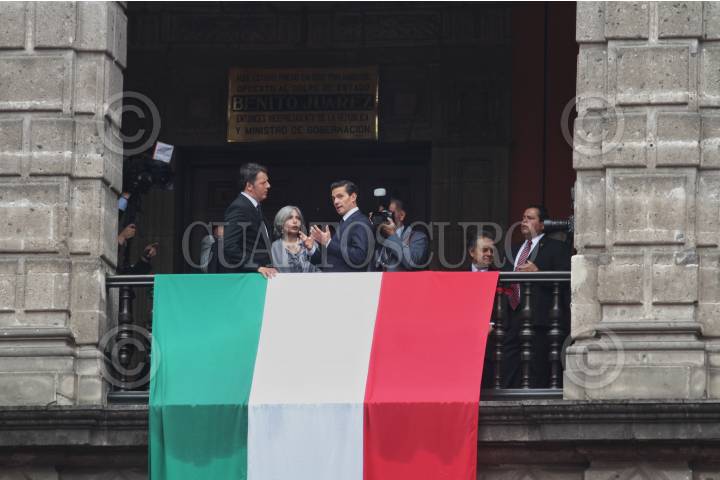 CIUDAD DE MÉXICO, 20ABRIL2016.- El presidente Enrique Peña Nieto recibió al Primer Ministro de Italia Matteo Renzi en el Palacio Nacional y ambo mandatarios ofrecieron un mensaje ante medios de comunicación e invitados. Una ligera lluvia retrasó el evento sin embargo la Ceremonia de Bienvenida continuará por la tarde. FOTO: PRESIDENCIA /CUARTOSCURO.COM
