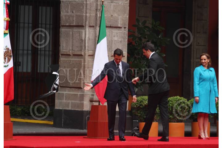 CIUDAD DE MÉXICO, 20ABRIL2016.- El presidente Enrique Peña Nieto recibió al Primer Ministro de Italia Matteo Renzi en el Palacio Nacional. Una ligera lluvia retrasó el evento sin embargo la Ceremonia de Bienvenida continuará por la tarde. FOTO: MARÍA JOSÉ MARTÍNEZ /CUARTOSCURO.COM