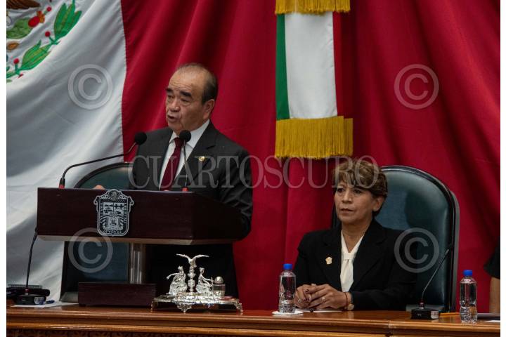 TOLUCA, ESTADO DE MÉXICO, 05SEPTIEMBRE2024.- Delfina Gómez Álvarez, Gobernadora del Estado de México y Maurilio Hernández Presidente de la Legislatura acudió a la Sesión Solemne de Apertura del Primer Periodo Ordinario de Sesiones del Primer Año de Ejercicio Constitucional de la LXII Legislatura. FOTO: CRISANTA ESPINOSA AGUILAR /CUARTOSCURO.COM