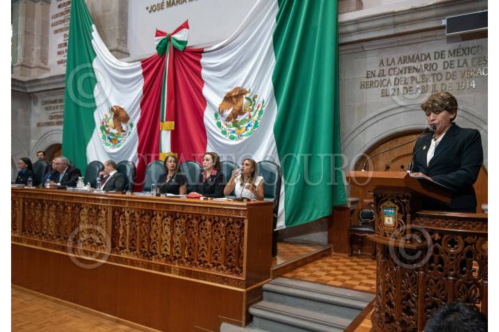 TOLUCA, ESTADO DE MÉXICO, 05SEPTIEMBRE2024.- Delfina Gómez Álvarez, Gobernadora del Estado de México acudió a la Sesión Solemne de Apertura del Primer Periodo Ordinario de Sesiones del Primer Año de Ejercicio Constitucional de la LXII Legislatura. FOTO: CRISANTA ESPINOSA AGUILAR /CUARTOSCURO.COM