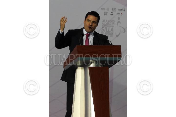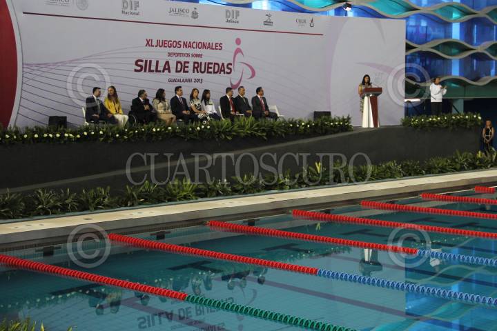 ZAPOPAN, JALISCO, 01OCTUBRE2013.- Hoy en el Centro Acuático Panamericano se llevo a cabo la Inauguración de los XL Juegos Nacionales Deportivos Sobre Silla de Ruedas Guadalajara 2013, misma que encabezo la primera Dama de México, Angélica Rivera, así como el Gobernador del Estado, Jorge Aristóteles Sandoval Díaz, entre otras personalidades federales, estatales y deportivas. FOTO: FERNANDO CARRANZA /CUARTOSCURO.COM