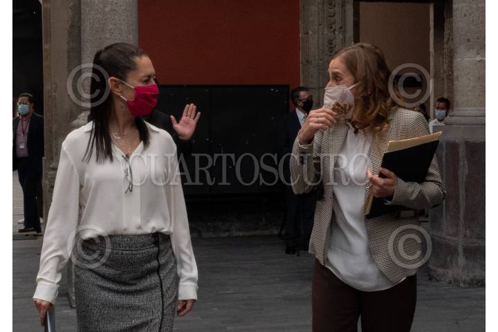Beatriz Gutiérrez Müller, presidenta del consejo honorario de memoria histórica y cultural de México; Claudia Sheinbaum Pardo, jefa de Gobierno de la Ciudad de México; Natalia Toledo paz, sub secretaria de Cultura;Eduardo Villegas Megías, coordinado