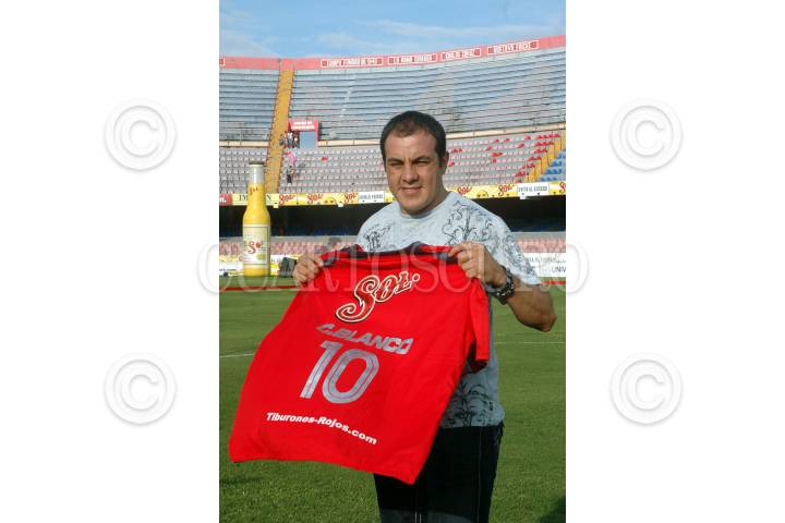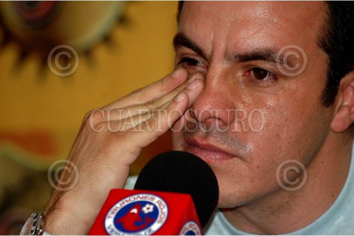 VERACRUZ, VERACRUZ. 21NOVIEMBRE 2009.- "Quiero llorar" Fueron las primeras palabras del delantero mexicano, Cuauhtémoc Blanco, al responder la primer pregunta durante la rueda de prensa ofrecida a los medios de comunicación después de haber sido presentado a la afición porteña en la cancha del estadio Luis "Pirata" de la Fuente. Blanco quien aun milita en el Chicago Fire de la MLS, vestirá el uniforme escualo el próximo "Torneo Bicentenario 2010". FOTO: JOSÉ CANDELARIO/CUARTOSCURO.COM