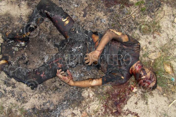 CÁRDENAS, TABASCO, 28MARZO2010.- Un joven entre los 18 y 21 años de edad fue encontrado sin vida, con varios impactos de balas y quemado en las inmediaciones de la rnachería Río Seco y Montaña. Segun las primeras pesquicias indican que el occiso llevaba un par de horas de su ejecución y que no dudan que el crimen organizado sea parte de los hechos sangrientos. FOTO: MARCO POLO GUZMÁN HERNÁNDEZ/CUARTOSCURO.COM