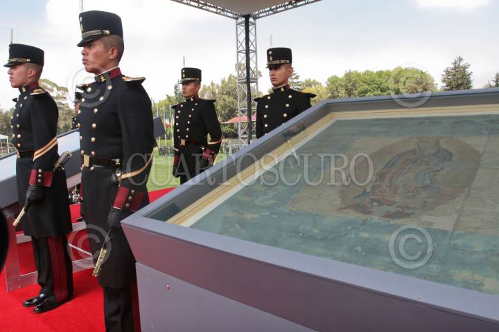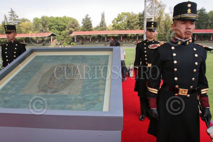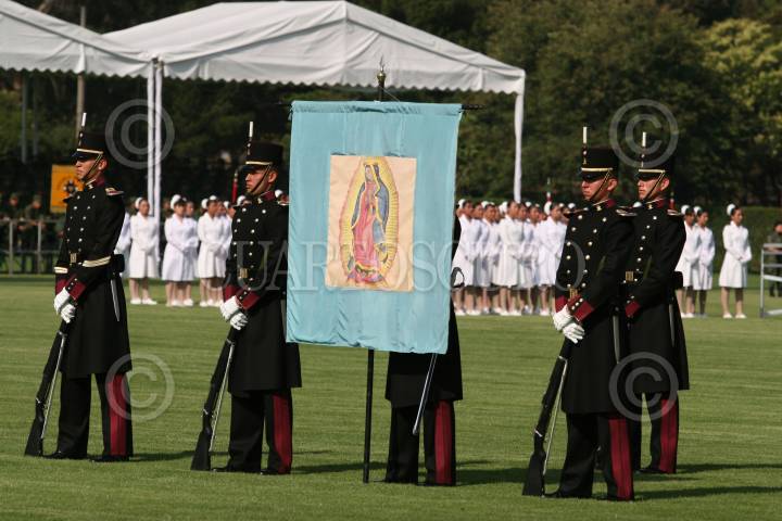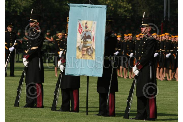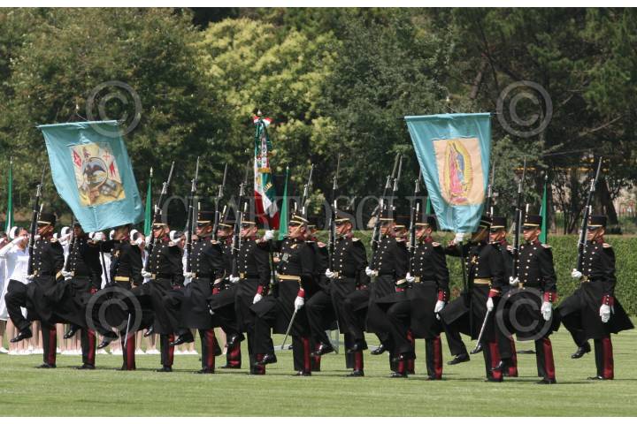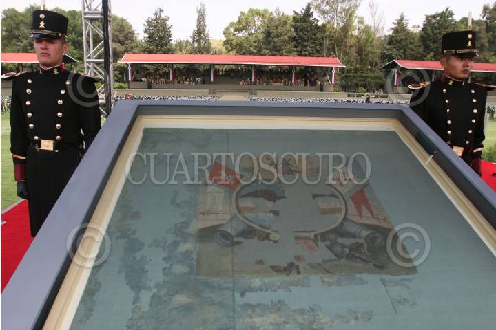 MÉXICO, D.F., 21JUNIO2010.- Cadetes del Heroico Colegio Militar, durante la ceremonia de entrega de las primeras banderas de su historia, arrebatadas en 1811 por las tropas españolas a los insurgentes y devueltas al gobierno mexicano, por parte del gobierno español, dicho acto fue presidido por el presidente de la república Felipe Calderónen el campo marte. FOTO: SAÚL LÓPEZ/CUARTOSCURO.