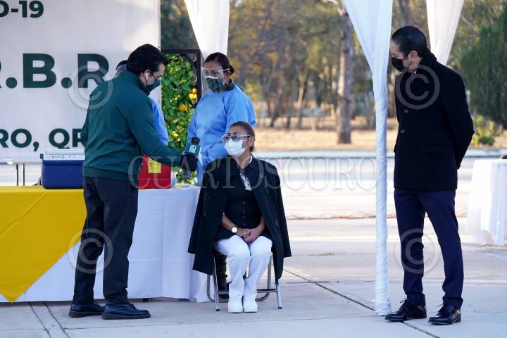 Zoé Robledo, director general del Instituto Mexicano Seguro Social (IMSS), encabezó el arranque de la vacunación contra COVID-19 para el personal de salud desde el Cuarto Regimiento Blindado de Reconocimiento de la 17 Zona Militar. La primera persona vacunada fue la enfermera del IMSS María del Rosario Lora López, quien es especialista en enfermería quirúrgica en el Hospital General Regional No. 2 (HGR) El Marqués.