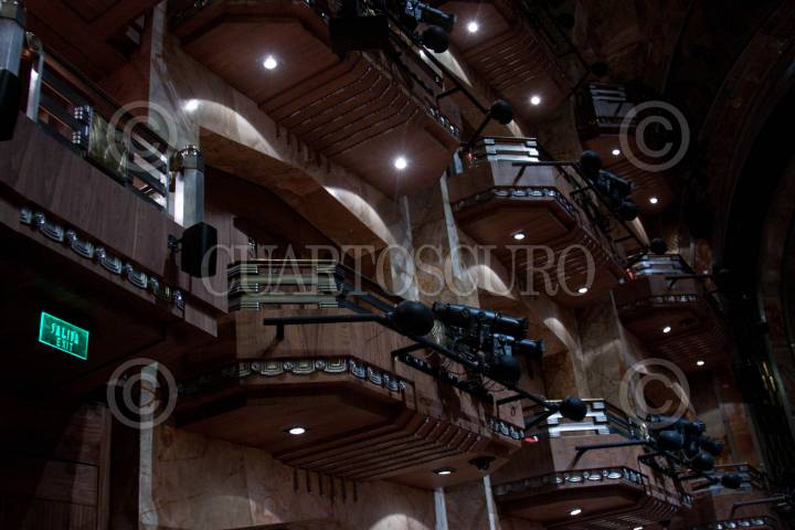 MÉXICO, D.F., 24ENERO2011.- La remodelación efectuada a la sala principal del Palacio de Bellas Artes tuvo un costo de 700 millones. La remodelación al recinto incluyó la colocación de 500 bocinas alimentadas por 40 micrófonos. Las butacas fueron modificadas y en los palcos se colocaron reflectores y bocinas con un recubrimiento de madera. En los accesos se colocaron escaleras. FOTO: IVÁN STEPHENS/CUARTOSCURO.COM