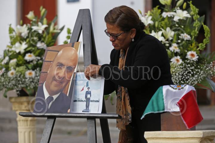 AMECA, JALISCO, 28DICIEMBRE2018.- Marco Antonio Tavera quien se desempeñara como Piloto aviador y falleciera el pasado 24 del mes en curso en un accidente aéreo en donde también perdieron la vida la Gobernadora de Puebla Martha Erika Alonso y su esposo el ex Gobernador y Senador Rafael Moreno Valle, fue homenajeado por familiares y amigos en la explanada de la Plaza principal de Ameca. FOTO: FERNANDO CARRANZA GARCIA / CUARTOSCURO.COM