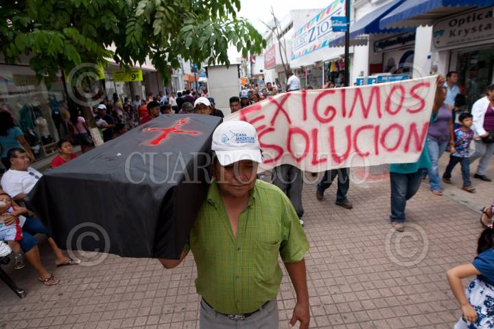 VILLAHERMOSA, TABASCO, 10AGOSTO2011.- Decenas de manifestantes protestaron por las principales calles de la ciudad ya que autoridades les impiden vender productos regionales en la Zona Luz. FOTO: MARCO POLO GUZMÁN HERNÁNDEZ/CUARTOSCURO.COM