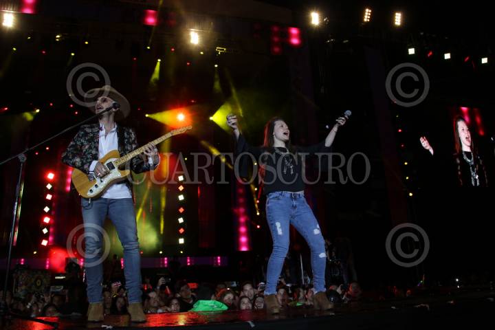 CIUDAD DE MÉXICO, 22ABRIL2016.- El dueto Jesse & Joy , canto en el concierto, que la estacion de Radio los 40 Principales, que ofrecio a sus radioescuchas, en el Estadio Azteca, FOTO: ANTONIO CRUZ / CUARTOSCURO.COM