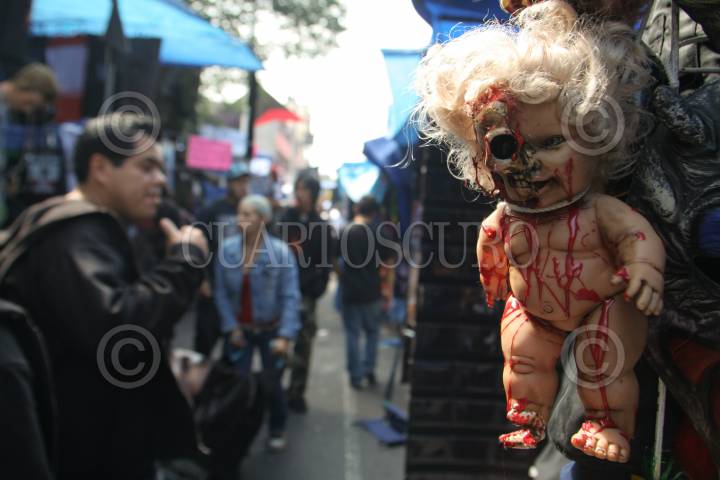 MÉXICO, D.F., 24OCTUBRE2009.- A 29 años de su creación, el tianguis cultural del Chopo se coloca los días sábados a un costado de la estación del metro Buenavista, al lugar acuden cientos de jóvenes principalmente de movimientos contra culturales y familias enteras, también en la parte final se encuentra "Radio Chopo", un espacio dedicado a la difusión de grupos musicales. FOTO: ENRIQUE ORDÓÑEZ/CUARTOSCURO.COM