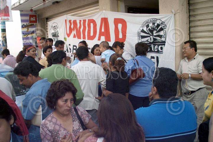 CHILPANCINGO, GUERRERO, 05ENERO2005.- Integrantes de la Coordinadora Estatal para la Reivindicación de los Principios de la CETEG, tomaron las oficinas del programa de Previsión Social antes CEBE de esta ciudad para exigir el pago de créditos. FOTO: Oscar Alvarado/CUARTOSCURO.COM