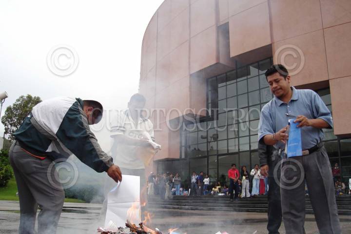 CHILPANCINGO, GUERRERO 30AGOSTO06.- Aspecto general de la quema de libros de texto gratuitos de estudio de secundaria, que realizaron integrantes de la Coordinadora Estatal por la Reivindicacion de los Principios de la CETEG encabezados por su dirigente Nicolas Chavez Adame, en la explanada del Congreso local en la ciudad de Chilpancingo, en repudio a las reformas que hizo el gobierno federal en los libros de nivel secundaria que no cumplen con las normal esenciales para la enseñanza . FOTO: Oscar Alvarado/CUARTOSCURO.COM